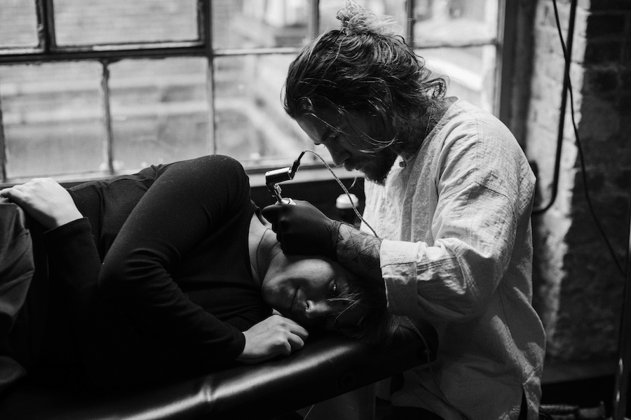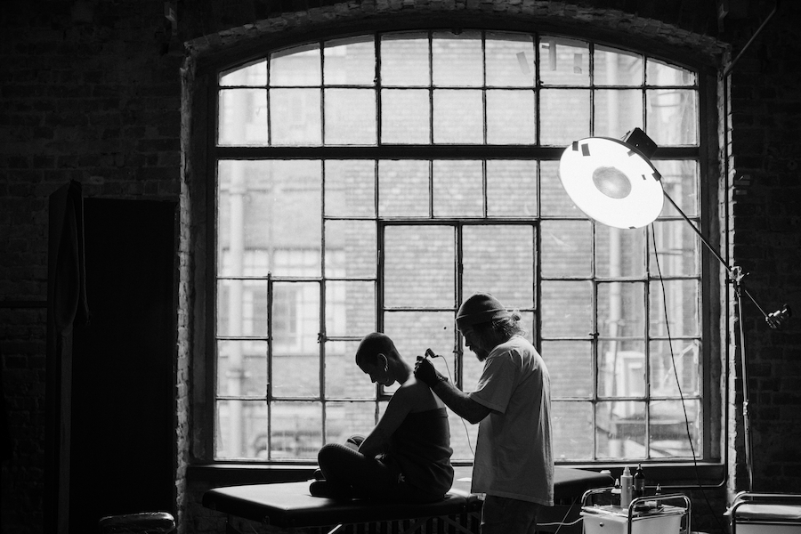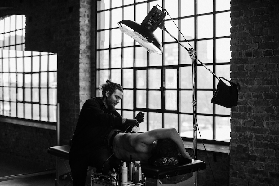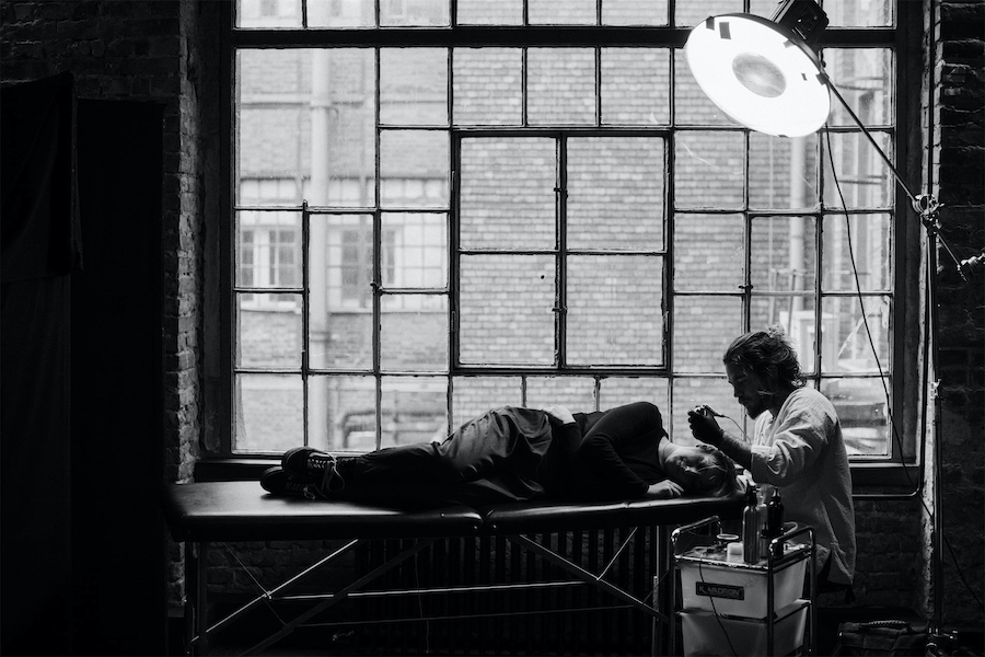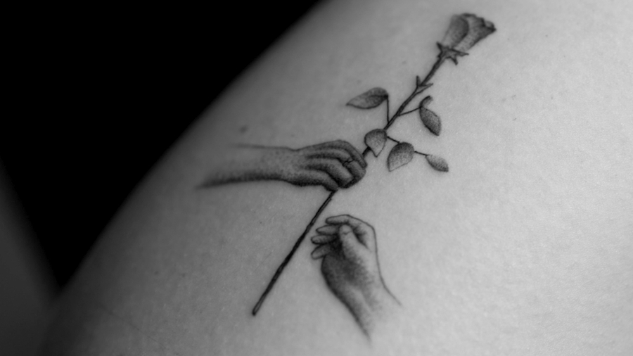 Tattoos often tell a story, but few pieces of body art do it as well as Balazs’s ambitious project called A Life of a Rose. The innovative idea united 70 strangers as they took part in the “ultimate love story” that depicted the cycle of the iconic flower. On the skin of each individual, Bercsenyi illustrated a little part of the entire story. He showed an initial sprout that was brought to full bloom and then picked as a gesture of love that eventually wilted.
